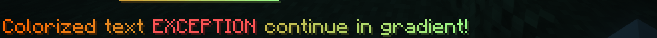 Used-Text: "<#FF6600>Colorized text &cEXCEPTION &rcontinue in gradient!</#9DFF8A>"
